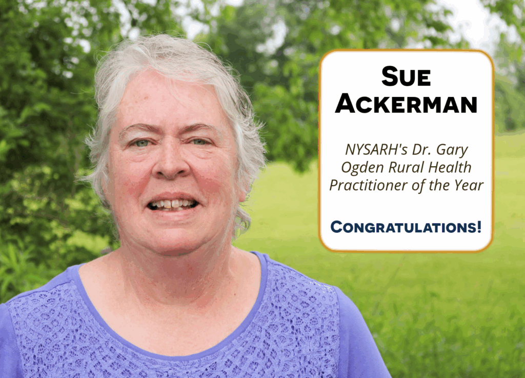 Sue Ackerman, Center Manager for the New York Center for Agricultural Medicine and Health (NYCAMH), was recently recognized as an awardee by the New York State Association for Rural Health (NYSARH).